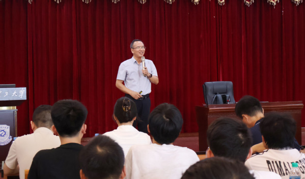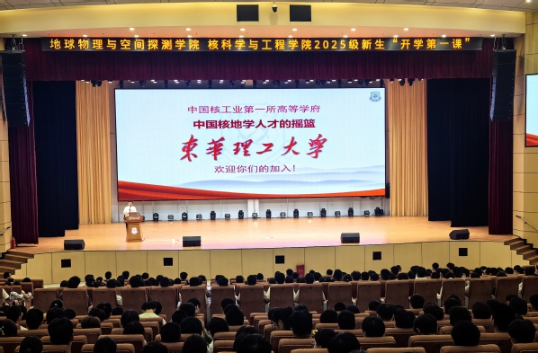 9月14日上午,东华理工大学党委常委、副校长邓居智在青岚校园活动中心,以“何为大学,大学为何,大学何为”为题,为2025级新生带来了一场精彩的“开学第一课”。核科学与工程学院近400名新生到场聆听。