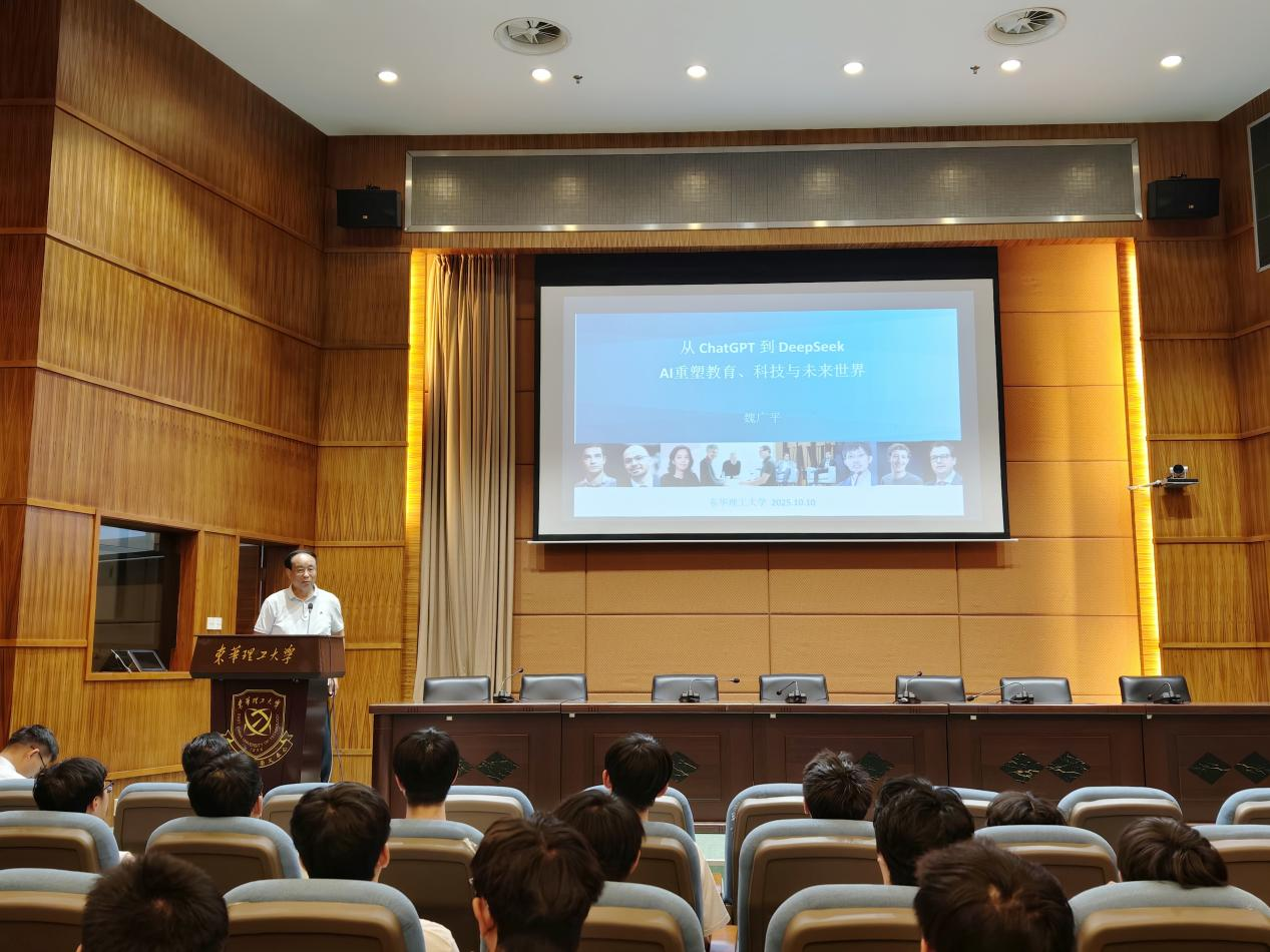 2025年10月10日,东华理工大学抚州校区图书馆4楼报告厅举办AI专题讲座。软件学院特邀专家魏广平以“从ChatGPT到DeepSeek:AI重塑教育、科技与未来世界”为题,为200余名师生分享AI领域前沿动态,搭建起技术与实践对接的交流平台。