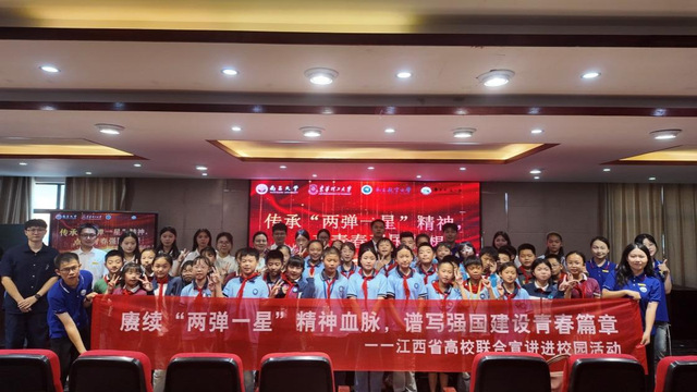 10月15日下午,东华理工大学、南昌大学、华东交通大学南昌航空大学四校宣讲团新庐小学教育集团广兰校区开展“传承‘两弹一星’精神,点亮青春强国梦想”主题宣讲活动南昌大学牵头组织