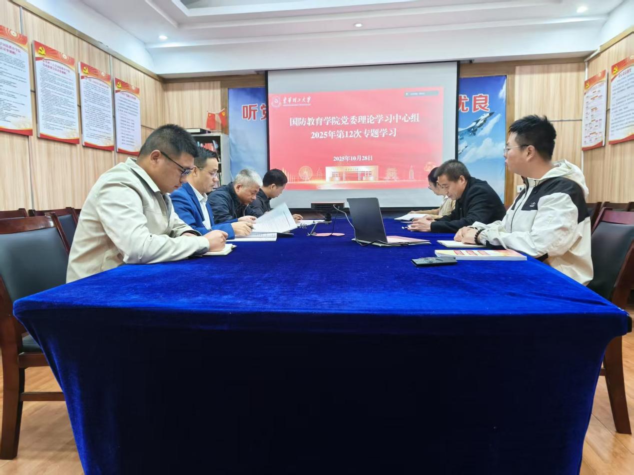 10月28日,国防教育学院党委书记赵克锋主持召开2025年第12次党委理论学习中心组(扩大)学习会。院党委副书记、院长吕开云、院党委理论学习中心组成员、各科室部门负责人参加。