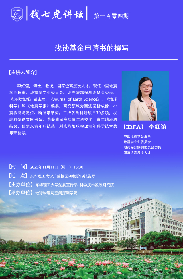 【钱七虎讲坛第一百零四期预告】浅谈基金申请书的撰写