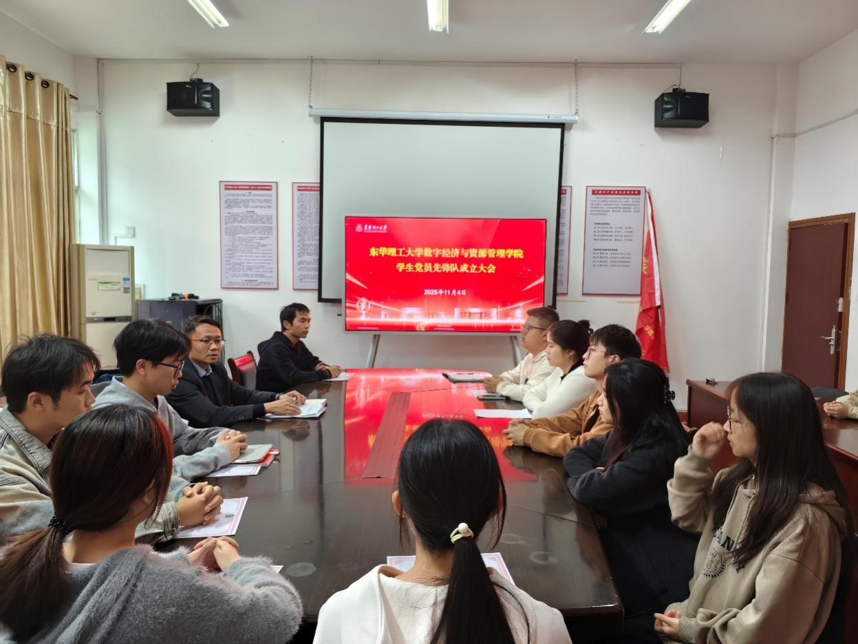 11月4日下午,数字经济与资源管理学院召开学生党员先锋队成立大会,学院党委书记黄宝华参加会议并讲话,学院学生党员先锋队队员和上一届党建中心成员参加会议。
