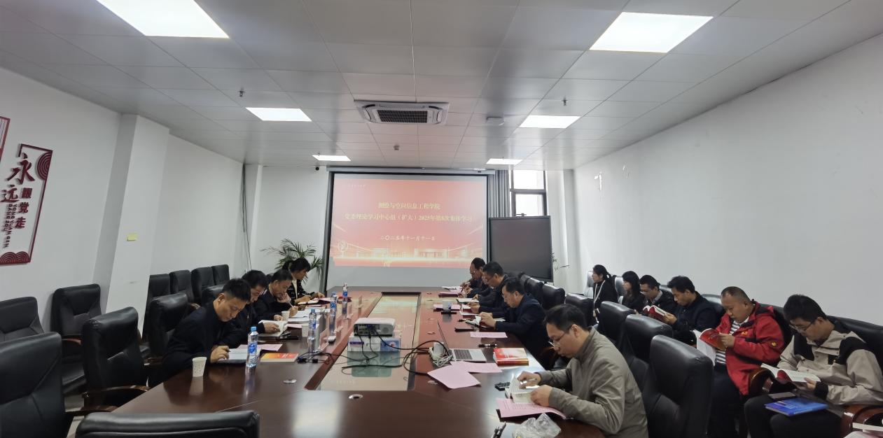 1111日,测绘与空间信息工程学院组织2025年党委理论学习中心组第8次集中学习,深入学习贯彻党的二十届四中全会精神。校党委常委、统战部部长张立亭到场指导,地球物理与空间探测学院党委书记黄合湘陪同,测绘与空间信息工程学院党委书记鲁铁定主持会议,学院党委理论学习中心组成员参加会议。