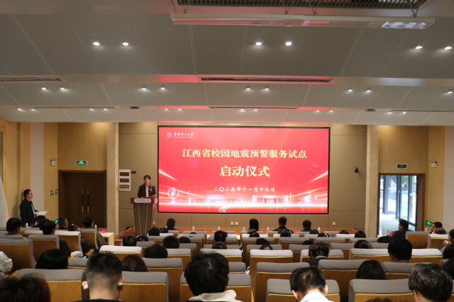 11月17日,由省地震局、省教育厅、省应急管理厅联合主办,东华理工大学承办的“地震预警进校园,筑牢安全防护线”江西省校园地震预警服务试点启动仪式在东华理工大学举行。省地震局党组成员、副局长胡翠娥,校党委常委、副校长邓居智出席。省教育厅、省应急管理厅、南昌市教育局、南昌市应急管理局等相关单位领导参加。