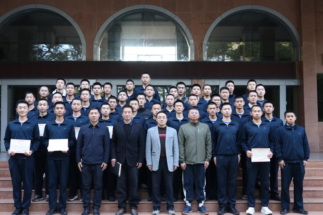 国防教育学院领导、老师为第十七届大队干部颁发聘书并合影留念。