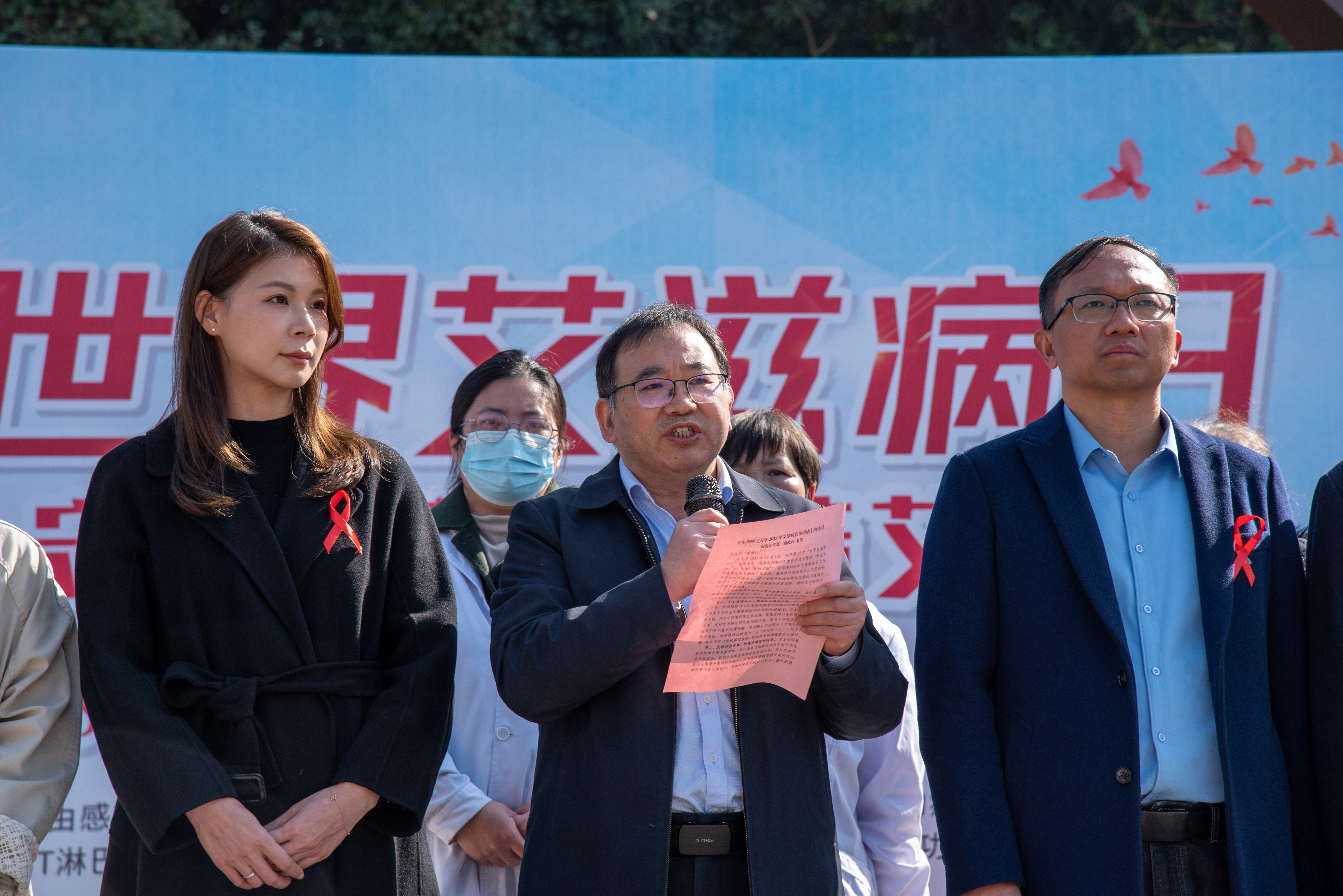 上午11时30分,朱笃宣布活动正式开始。他在讲话中指出,学校始终将师生健康放在首位,艾滋病防治是践行“健康第一”教育理念的重要实践。面对艾滋病防治的长期性,他提出全校应做到“三个坚持”:一是坚持社会共治,推动防艾工作从“单点发力”转向“合力攻坚”,构建职能部门协同、师生全员参与的防治体系;二是坚持守正创新,既要巩固健康讲座、知识咨询等传统宣教形式,也要运用新媒体直播、防艾文创展览等新载体,以更贴近青年的方式传播科学知识;三是坚持终结目标,在肯定已有防治成效的同时,保持清醒认识,持续投入,科学防控。他呼吁师生消除歧视、积极预防,共同参与校园健康治理。