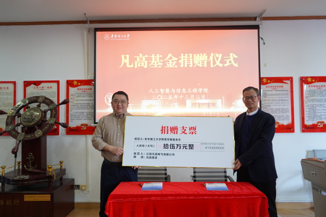 12月2日,“凡高基金”捐赠仪式在东华理工大学举行,校党委常委、副校长杨波,学校2006届计算机科学与技术专业校友、江苏凡高电气有限公司总经理朱海飞出席。