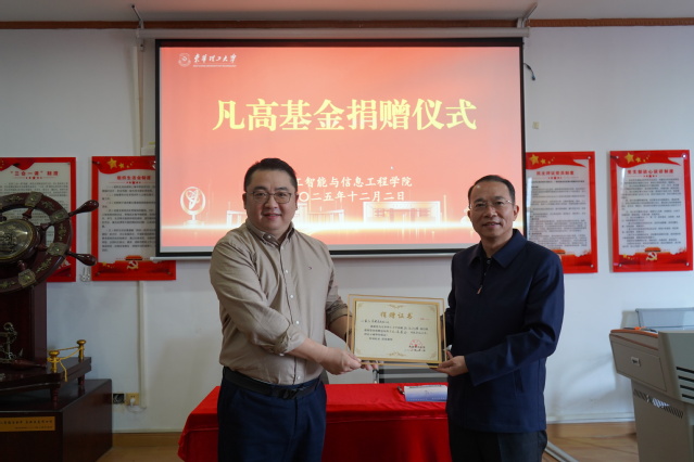 仪式上,杨波向朱海飞颁发了捐赠证书。人工智能与信息工程学院主要负责人与朱海飞共同签署捐赠协议。
