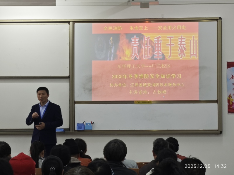 为进一步强化后勤员工的安全意识,普及消防安全知识,提升应对突发安全事故的能力,12月5日下午,南昌校区全体后勤管理人员和饮食从业人员140余人,在广兰校园3教104教室参加培训。本次培训由江西省诚安应急服务负责人占教官主讲。