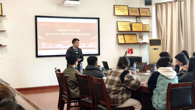 2025年12月7日上午,我校在南昌校区召开了校友换届大会暨70周年校庆工作推进会,按照会议安排,下午3点,我院在枫林艺术楼509开展返校参会校友座谈会。07级校友—山东校友会执行秘书长、青岛小全科技总经理张辉亮,07级校友—北京墨旭空间艺术设计有限公司总经理、深圳市宝驰科技发展有限公司北京分公司总经理、室内高级设计师、故宫文创设计总监朱旭应邀参加座谈会,并做经验分享。会议由美术与设计学院党委书记邹红梅主持,现场气氛热烈,座无虚席。