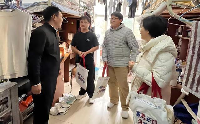 走访途中,领导们细致询问每一位同学的复习进度、知识点攻坚情况,关切了解大家的饮食作息、后勤保障等生活细节,更主动倾听同学们在备考中遇到的压力困惑与实际难题。同时反复叮嘱同学们:备考关键期既要全力以赴向目标冲刺,更要懂得劳逸结合,科学规划作息时间,保持饮食营养均衡;冬季寒意渐浓,务必做好防寒保暖,适当参与体育锻炼,以强健的体魄、饱满的精神状态迎战考试。