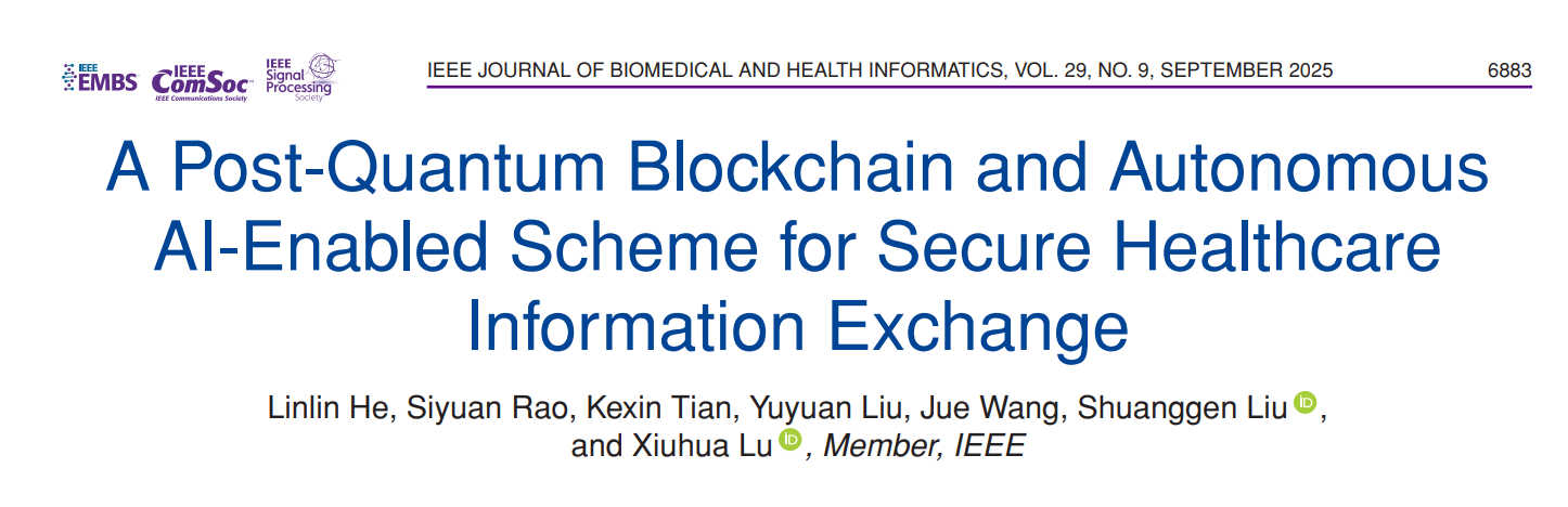 近日,东华理工大学软件学院何璘琳老师作为第一作者,在国际权威生物医学与健康信息学期刊《IEEE Journal of Biomedical and Health Informatics》上发表了题为《A Post-Quantum Blockchain and Autonomous AI-Enabled Scheme for Secure Healthcare Information Exchange》的研究成果。该研究以东华理工大学为第一署名单位,联合西安邮电大学、曲阜师范大学等高校合作完成。