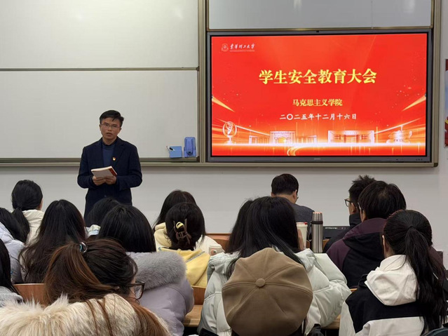 贺明银指出,安全问题绝不能掉以轻心,任何看似“习惯”的小动作,都有可能酿成无法挽回的大灾难。他要求同学们牢固树立“安全第一”的意识,重点做好防火用电安全,同时也要高度重视交通安全、防诈骗、信息安全和意识形态安全等方面的问题。一旦遇到紧急情况,要第一时间报警并向学校保卫处报告,做到不慌张、不隐瞒、不拖延。