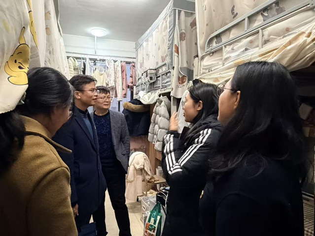 走访过程中,老师们与同学们亲切交谈,详细询问大家的生活感受、学习情况及实际需求,反复叮嘱同学们时刻绷紧安全之弦,自觉遵守宿舍安全管理规定,提高自我防范能力。针对同学们提出的生活难题与合理建议,老师们逐一耐心回应,现场协调解决部分实际问题,让同学们深切感受到学院的关怀与温暖。