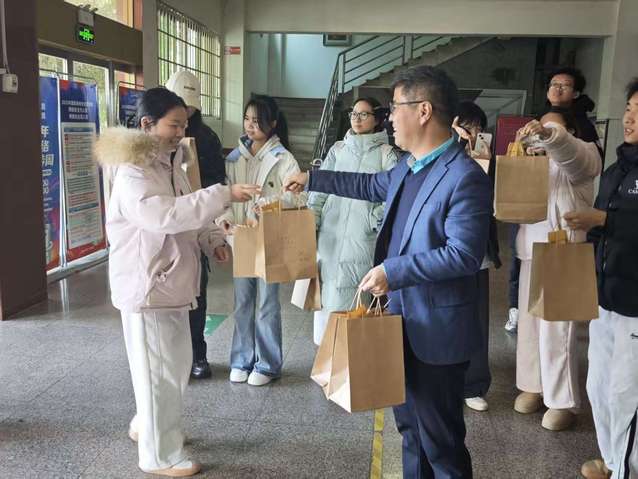 发放环节,书记亲手将礼包递到每一位考研学子手中,与大家亲切交流,叮嘱学子们调整心态、沉着应考,以饱满状态迎接挑战,同时注意劳逸结合,学院永远是大家最坚实的后盾。学子们接过沉甸甸的礼包,脸上满是感动与坚定,纷纷表示将不负学院厚望,全力以赴冲刺考研,不负过往付出与青春热爱。