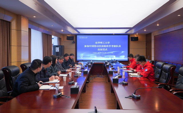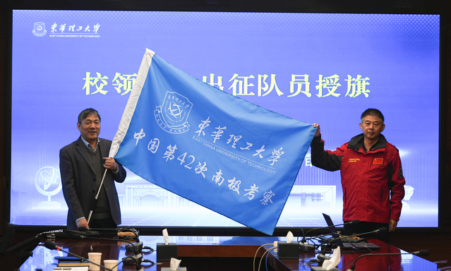 12月31日,东华理工大学在南昌广兰校园举行参加中国第42次南极科学考察队员出征仪式。校党委副书记、校长罗仙平出席并致辞,校党委常委、副校长邓居智主持。