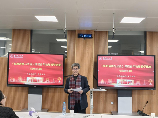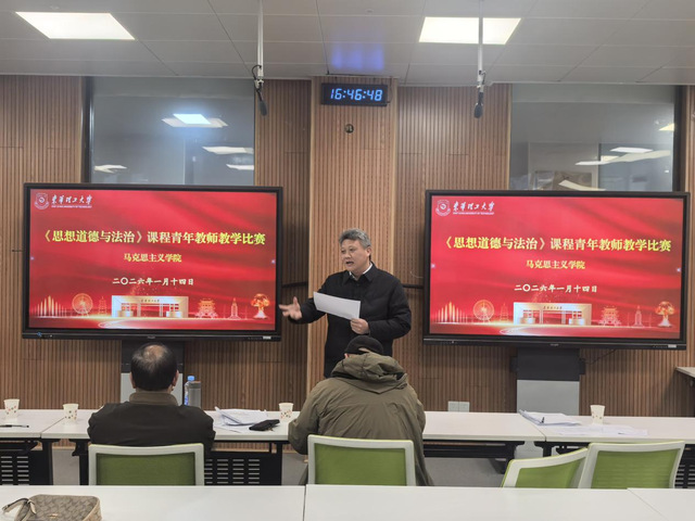 2026年1月14日,东华理工大学马克思主义学院在4教302、303教室成功举办《思想道德与法治》课程组青年教师比赛。本次比赛特邀江西农业大学马克思主义学院院长魏毅、华东交通大学马克思主义学院院长张剑锋分别担任评委组组长。