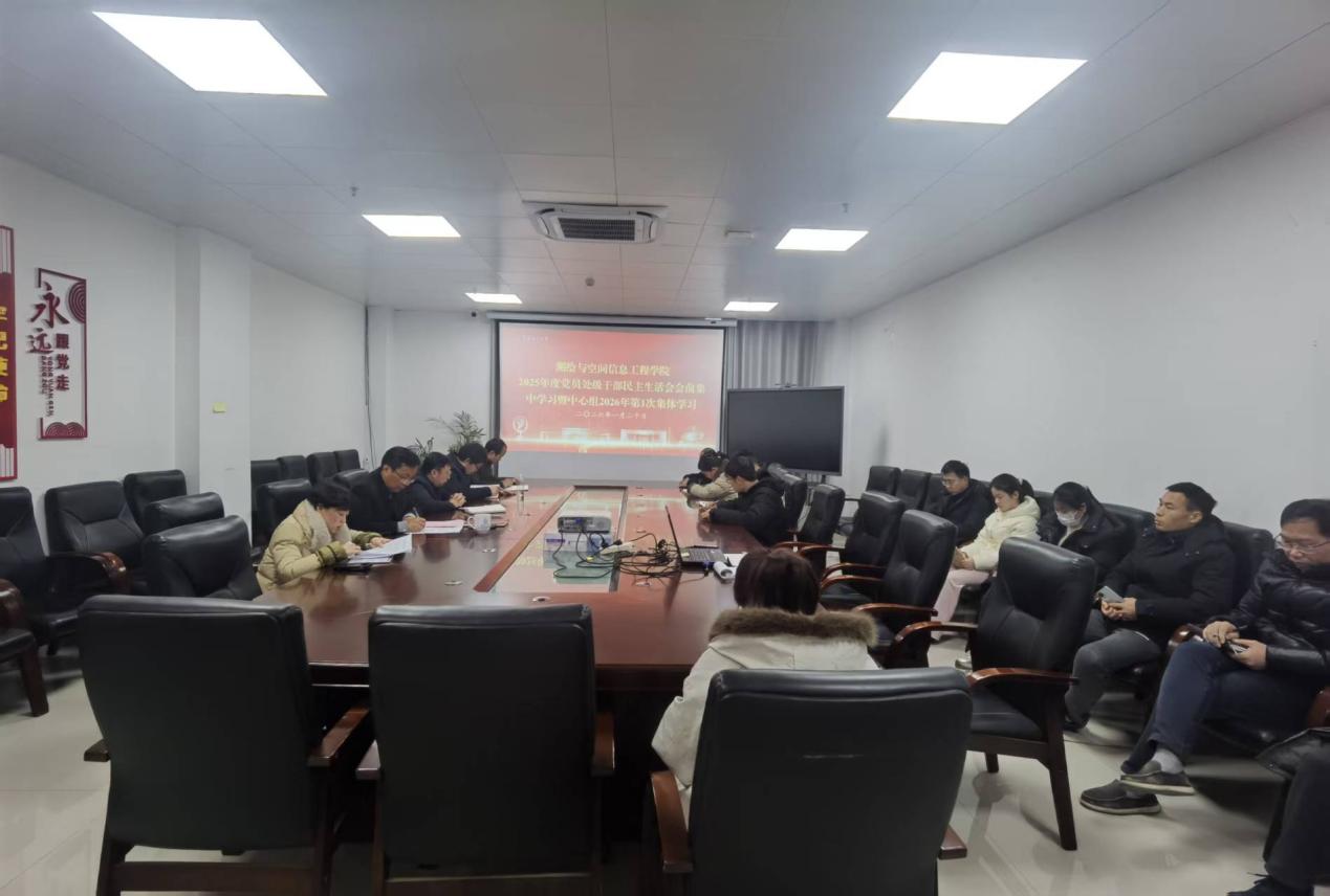 1月20日,测绘与空间信息工程学院党委理论学习中心组在新实验大楼1320会议室开展2025年度民主生活会会前集中学习暨2026年第1次集体学习。学院党委书记鲁铁定主持会议,党委班子成员、科级干部、党支部书记参加学习交流。