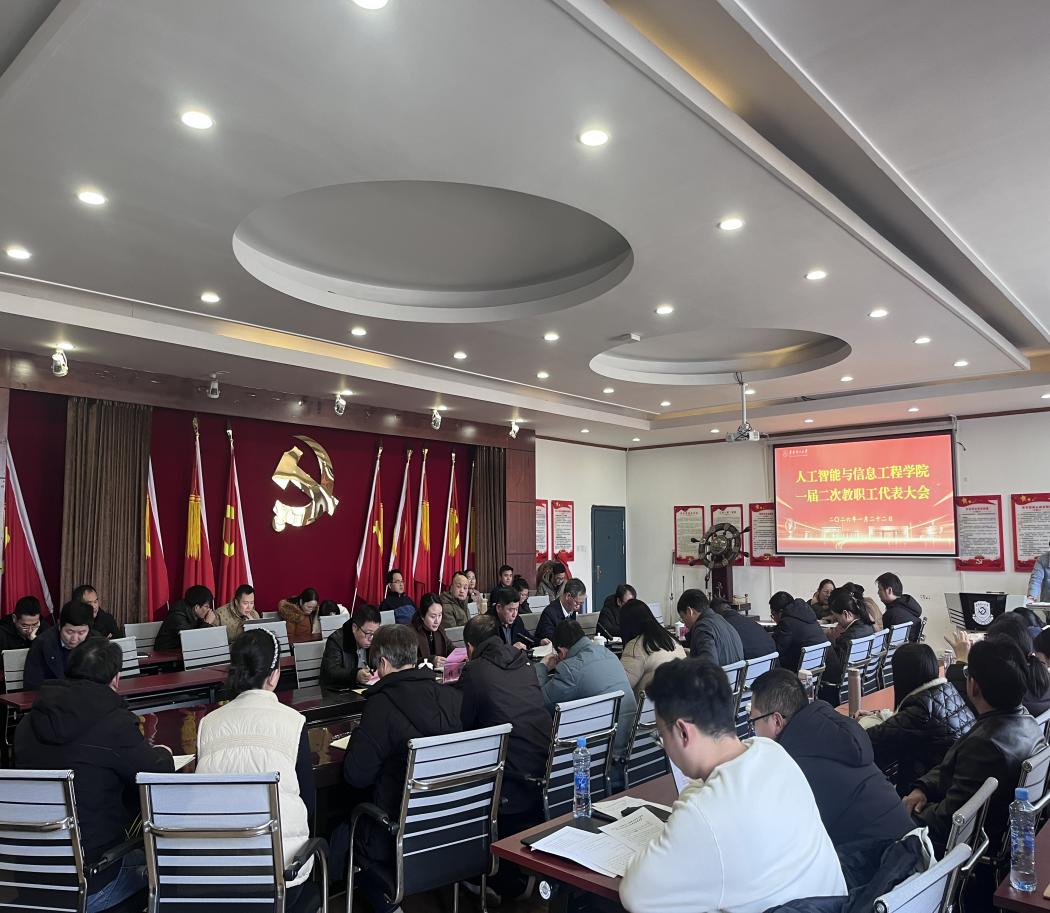 1月22日,人工智能与信息工程学院第一届教职工大会暨工会会员大会第二次会议在软件楼316会议室召开。校工会副主席张蕾应邀莅临指导,学院党政领导班子及全体教职工代表参会。会议由学院党委书记王平风主持。