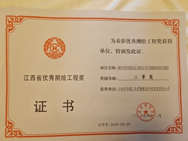 近日,江西省测绘学会2025年学术年会暨十一届四次理事(扩大)会在南昌成功召开,会议颁发了2025年江西省优秀测绘工程奖,江西东华理工大学勘察设计研究院有限公司报送的“G329牛屯河桥危旧桥梁改造工程(芜湖鸠江段)项目下穿郑蒲港铁路专用线第三方监测项目”获优秀测绘工程奖二等奖。
