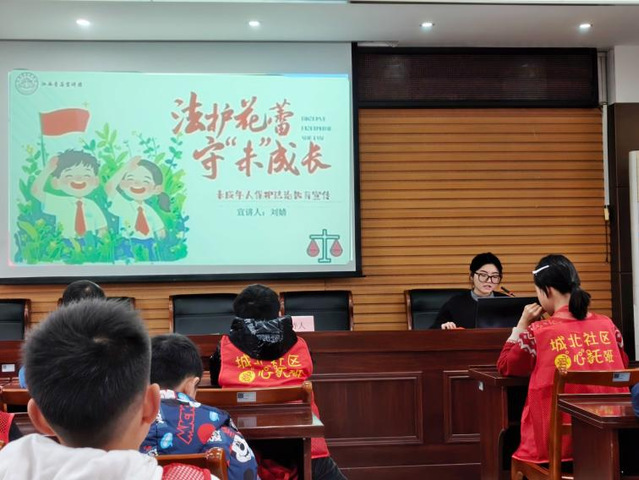 刘婧以“法护花蕾守‘未’成长”为主题,聚焦《中华人民共和国未成年人保护法》与未成年人健康成长,系统讲解了未成年人享有的各项权利,并重点介绍了家庭、学校、社会、网络、政府、司法构筑的“六大保护盾”。宣讲中,她特别结合生活实际,详细阐释了“网络保护”中关于直播账号年龄限制、打赏退款等规定,以及“强制报告”制度的重要性,引导孩子们在遇到侵害时勇敢求助。