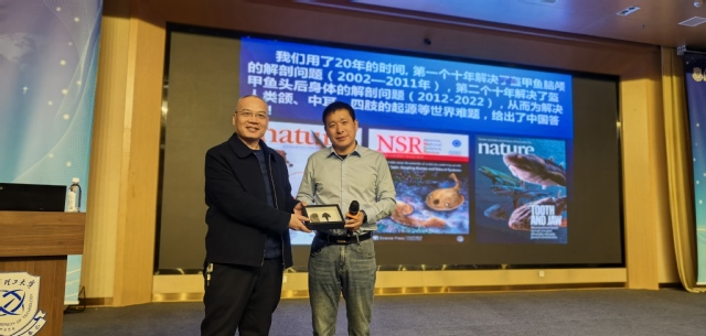 盖志琨以人与鱼类呼吸方式的异同切入,深入浅出讲解人类颌骨起源、从鱼类到人类演化关键框架、人类四肢起源等前沿科学问题,用生动有趣的讲解、翔实的化石证据,为现场师生揭开脊椎动物演化的神秘面纱,带来兼具科学性与趣味性的学术分享。