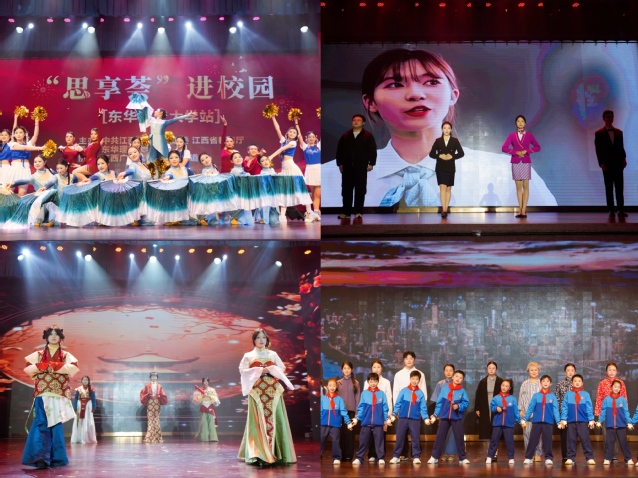 活动涵盖舞蹈、思政分享、非遗服装秀、情景剧、情景朗诵等多种形式。舞蹈类节目中,江西航空职业技术学院的《新时代之子》以昂扬的舞姿展现青年报国豪情,东华理工大学的《他衣褶里的蓝》《向往》以深情演绎传承核军工文化,抚州市教育体育局的《柿柿如意》以灵动舞步寄托美好祝愿,赣东职业技术学院的《万疆》以恢弘气势礼赞盛世中华,抚州幼儿师范高等专科学校的《新月之“兰”》以清新雅致的表达展现青春风采,赢得现场阵阵掌声。思政分享类节目中,抚州职业技术学院以《技能铸魂,青春无悔》为题讲述职教青年的奋斗故事;东华理工大学以《青春“核”你:在红色土地上书写信仰》为题,分享核军工文化在青年一代的赓续传承;抚州医药学院以《打开大视野,让“大思政课”见行见效》为题,探讨思政育人新路径;赣东学院以《追光向强,青春有样》为题,激励青年奋发向上,引发师生强烈共鸣。此外,赣东学院的非遗服装秀《赣东纹彩 非遗华裳》以传统纹样与现代设计相融合,展现了中华优秀传统文化的时代魅力;抚州幼儿师范高等专科学校的情景剧《书页里的中国心》以动人演绎传递家国情怀;东华理工大学的情景剧《无声的长河》用细腻表演诠释奉献与坚守;抚州职业技术学院带来的情景朗诵《扎根·筑梦》,以铿锵之声表达职教青年扎根基层、筑梦未来的坚定信念。整场活动以丰富多彩的节目形式,充分展现了新时代青年在强国建设、民族复兴征程中的志气、骨气与底气。