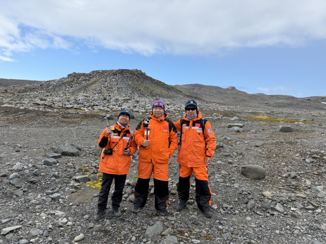 根据考察任务分工,刘晓东教授、裴军令研究员参加南极半岛队,赴南极半岛、南设得兰群岛多个区域开展野外地质调查,系统采集古地磁、年代学和地球化学分析所需样品;侯礼富博士参加长城站队,在长城站周边多个典型地质剖面开展系统调查与样品采集,获取了中—新生代火山岩样品。考察过程中,3名队员克服低温、强风、地形复杂及样品搬运不便等实际困难,扎实推进路线踏勘、剖面调查和样品采集等工作,圆满完成了各项科考任务。“作为东华理工大学首批踏上南极的科研队员,我们深知这份信任与责任。未来将继续发扬南极精神,在极地科研道路上勇探新路,为国家极地事业贡献东华理工力量。”裴军令研究员说。