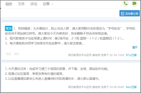 1.考虑大多数同学平时有看QQ信息的习惯,使用QQ群发布信息。课前通过QQ群和学习通同步发布学习流程及要求。