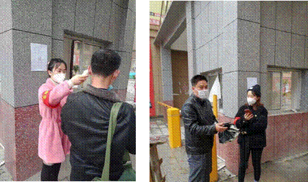 图2 许艳姿在路边巡视并上门宣传防疫知识