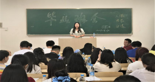 这是最后一堂班会,最后一次点到。大家尤为激动,宛如第一天踏入校门。班会上,班主任丁晓卿老师首先针对毕业班离校日程安排、毕业典礼等工作进行了详细的讲解。随后,他与同学们一起回忆了四年大学生活的点滴,并对各位同学给予了美好祝愿,希望各位学子在未来的人生中不负青春韶华,做新时代的奋进者;希望同学们牢记“敦本务实,崇义奉公”的校训,把个人梦想融入民族梦想,同时转化为爱国情和报国志,在实现中国梦的生动实践中放飞青春梦想。