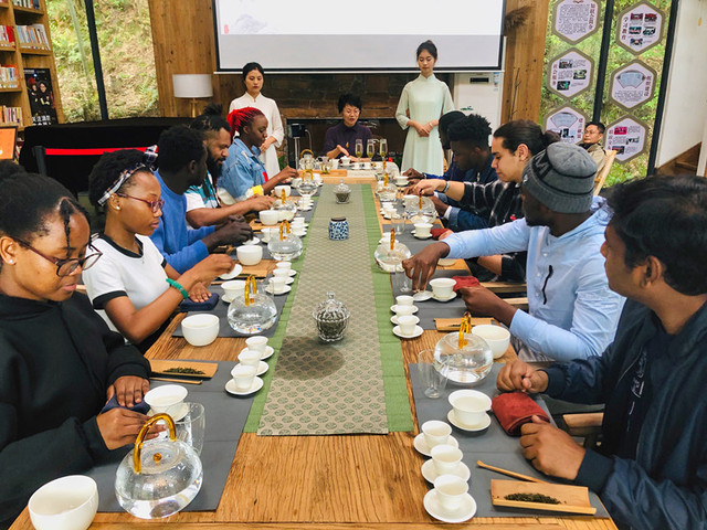 活动围绕谷雨“茶道文化”、“谷雨诗会”等主题进行。在梅岭茶园山,国际学生们观摩了采茶人山间劳作,学习了茶叶采摘技巧,体验了制茶过程。活动还安排了学泡中国绿茶环节,茶艺老师向国际学生介绍茶具、茶的礼仪,讲解泡茶的要点,演示泡茶的整个过程。国际学生跟随老师兴致勃勃地学习识茶、泡茶、品茶,感受中国茶文化所蕴涵的社会礼仪和生活态度。