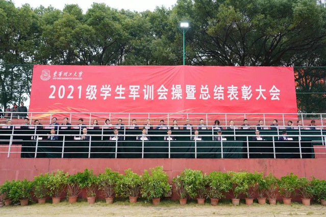迷彩戎装,青春飞扬,10月22日上午,东华理工大学2021级学生军训会操暨总结表彰大会在南昌校区和抚州校区田径场同步举行。在家校领导出席,党委办公室(校长办公室)、党委宣传部、学工部(处)、校团委、教务处、后勤保障处、保卫处等部门负责人,各学院分管学生工作负责人、新生辅导员、海军士官生教官和2021级全体学生参加大会。校党委副书记刘紫春主持大会。