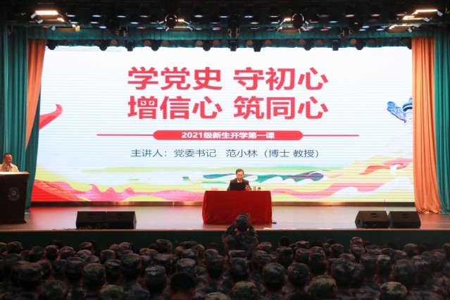 “同学们知道**战争以后我们的国家遭受了怎样的不堪吗?这一百年来,在党的坚强领导下,中华民族和中国人民披荆斩棘,实现了从站起来富起来到强起来的伟大飞跃,正在走向世界舞台中央。而你们,正是实现第二个百年奋斗目标的中坚力量。希望你们以实现中华民族伟大复兴为己任,增强做中国人的志气、骨气、底气,不负时代,不负韶华,不负党和人民的殷切期望。”校党委书记范小林在“开学第一课”上深情地说。为帮助学生扣好人生第一粒扣子,范小林已坚持连续8年为新生全覆盖讲授“开学第一课”。