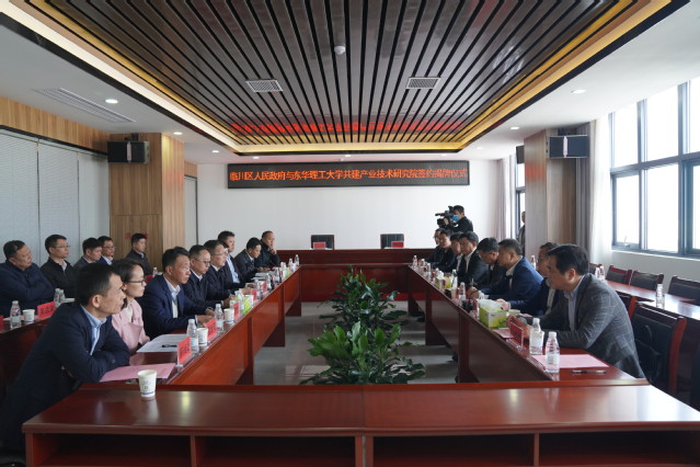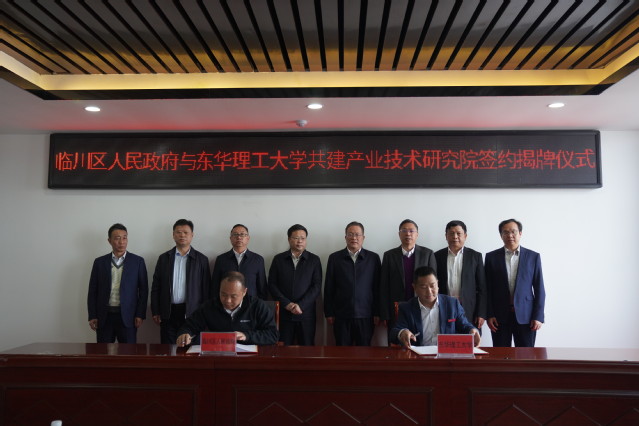 11月18日上午,我校与抚州市临川区人民政府共建产业技术研究院签约仪式在抚州市临川区高新科技产业园举行。抚州市副市长汪华辉,抚州市临川区区委书记董东明,抚州市临川区区委副书记、区长李群彪,抚州市临川区副区长张向阳,校党委副书记、校长孙占学,校党委常委、副校长刘云海出席仪式。签约仪式由李群彪主持,刘云海、张向阳分别代表双方签署协议。学校科研与科技开发处、省部共建办、东华理工大学国家大学科技园、机械与电子工程学院、科技成果转化与技术转移中心等部门负责人一同参加仪式。