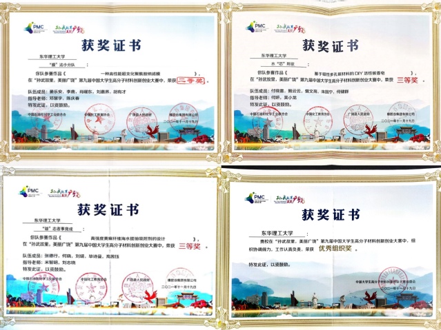 近日,第九届中国大学生高分子材料创新创业大赛决赛落下帷幕。我校参赛作品《一种高性能超支化聚酰胺纳滤膜》荣获二等奖、作品《基于磁性多孔碳材料的活性碳香皂》和《高强度黄麻纤维海水提铀吸附剂的设计》荣获三等奖,化学生物与材料科学学院教师陈庆春、邓慧宇获得“优秀指导教师奖”,我校还荣获“优秀组织奖”。