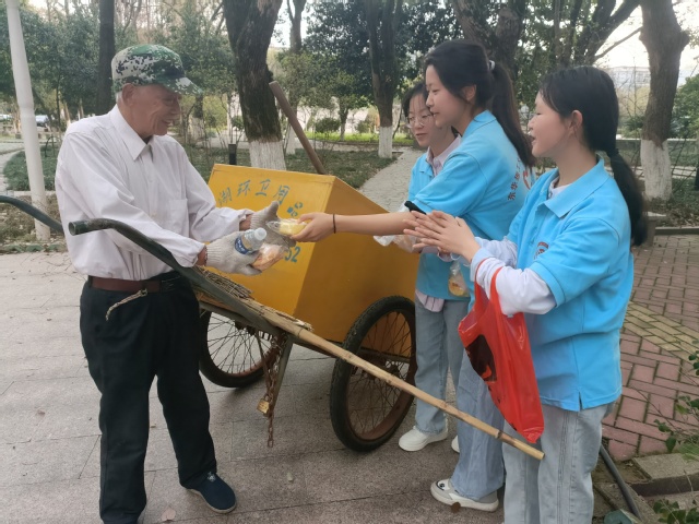 3月13日,抚州师范学院青年志愿者们起了个大早,将一份份“爱心早餐”送到了环卫工人们的手上,并感谢他们为城市净化所做的努力和贡献,让大家能享受到如此干净、清新的城市环境。收到“爱心早餐”的环卫工人陈大妈说:“我做环卫工作已经十余年了,感谢社会上有那么多的爱心人士对我们的关爱与关怀,这是对我们工作肯定,我们的付出是值得的。”