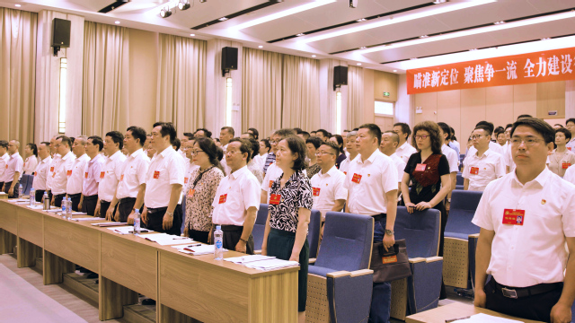 在热烈的掌声中,张福庆同志代表中国共产党东华理工大学第一届委员会作了题为《瞄准新定位 聚焦争一流 全力建设“行业领先、国内一流、国际知名”特色高水平大学》工作报告。