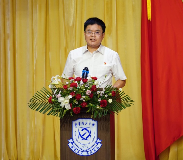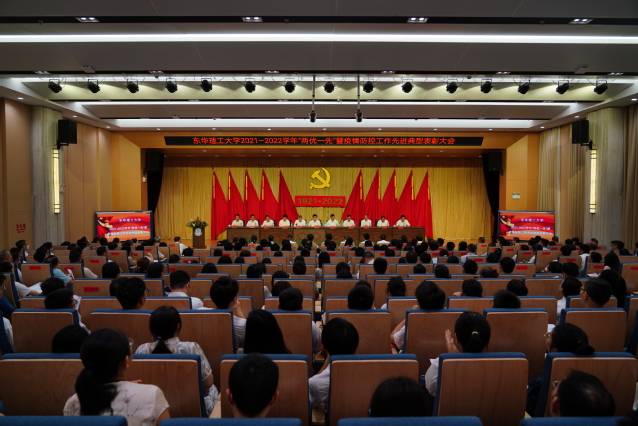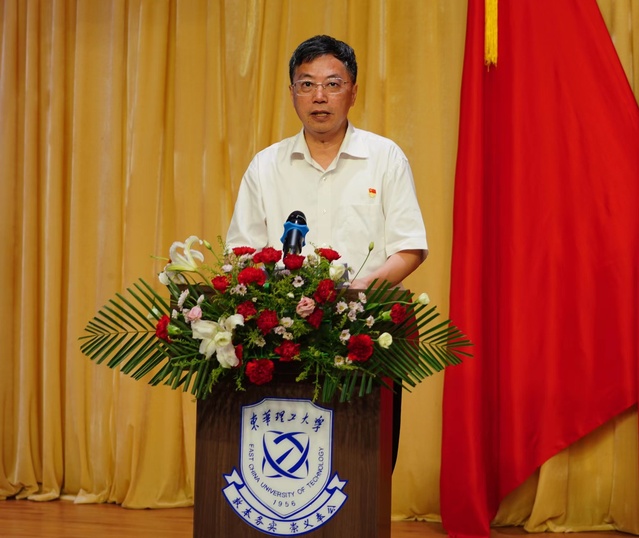 校党委副书记、校长孙占学宣读《中共东华理工大学委员会关于表彰2021-2022学年优秀共产党员、优秀党务工作者、先进基层党组织的决定》。校党委常委、副校长聂逢君同志宣读《关于表彰2022年新冠肺炎疫情防控工作先进集体和先进个人的决定》。