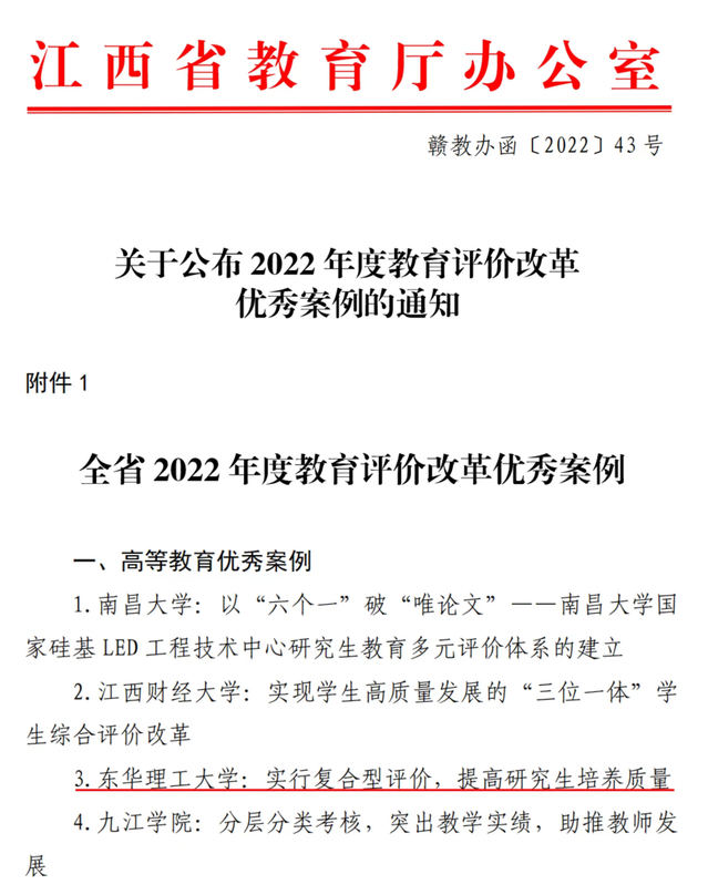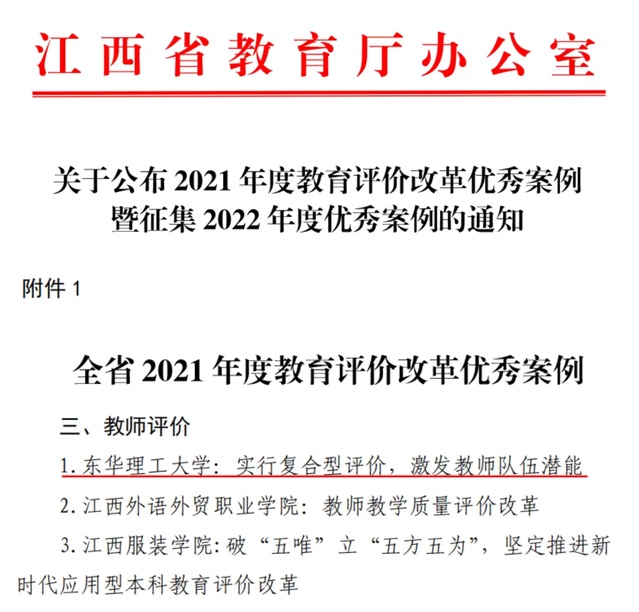 近日,江西省教育厅公布了2022年度全省教育评价改革优秀案例,学校报送的改革案例《实行复合型评价,提高研究生培养质量》成功入选,成为全省为数不多的连续两年获评优秀案例的高校。
