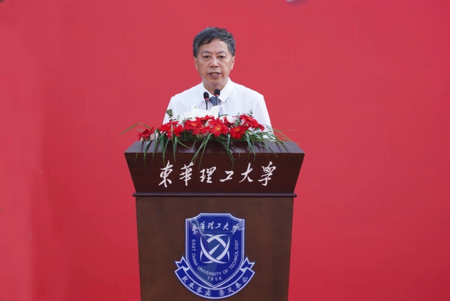 校领导为研究生、本科生新生代表佩戴象征东华理工大学文化积淀与精神追求的校徽,勉励大家将“核军工文化”铭记于心,共担东华理工的历史使命,共创东华理工的未来荣光。