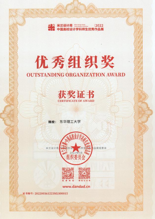 近日,2022年第六届米兰设计周——中国高校设计学科师生优秀作品展国赛评选落下帷幕,我校艺术学院荣获国家级奖项22项,分别为学生组一等奖1项、二等奖5项、三等奖4项、优秀奖12项,并荣获“优秀组织奖”;荣获省级奖项19项,分别为一等奖4项、二等奖7项、三等奖8项。