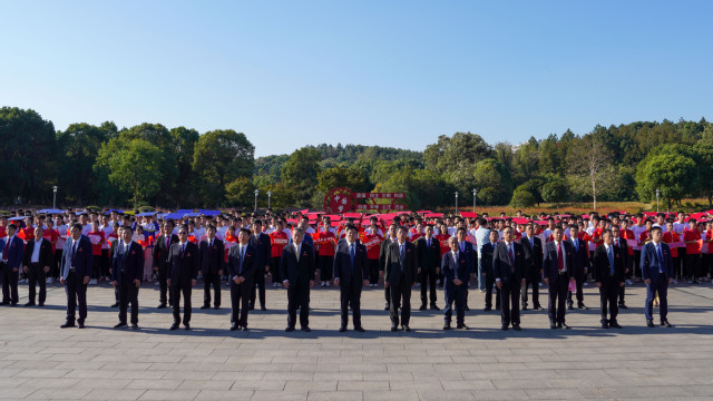上午8时15分,活动正式开始。全体肃立,国旗护卫队的学生护卫着五星红旗,迈着铿锵有力的步伐走向升旗台,雄壮的《义勇军进行曲》奏响,全场高唱国歌,鲜艳的五星红旗冉冉升起,在国旗广场上空迎风飘扬。学校“核”唱团深情演唱红色歌曲《绒花》,“世上有朵美丽的花,那是青春吐芳华,铮铮硬骨绽花开。沥沥鲜血染红它……”通过优美抒情的旋律,向党和母校致以青春的礼赞。作为中国第一所核工业高等学府,东华理工大学66载风雨兼程,一路筚路蓝缕,一路弦歌不辍,其中涌现出一批批“服务军工、科教报国”的先进典型人物,朗诵表演《榜样》,通过跨越时空的对话,带领在场师生从榜样身上汲取奋进力量。