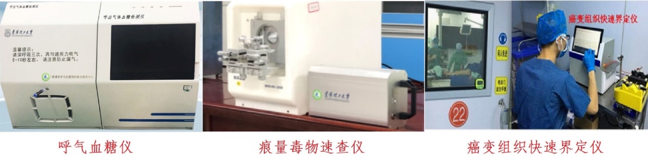 基于此原理,本项目历时15年,发明了新冠肺炎呼气质谱快检仪、呼气血糖仪、痕量毒物速查仪、术中癌变组织快速界定仪等一系列验证样机,核心技术被业内人士认定为“国内首创,国际领先”。