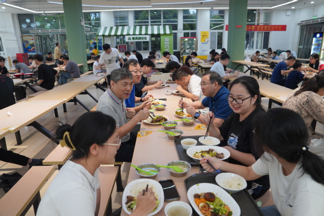 在西区食堂,罗仙平深入后厨操作间、食材储藏库、餐具消毒区等关键点位,细致检查食品采购溯源记录、加工制作规范、环境卫生消杀及消防设施配备情况。他强调,食品安全是校园安全的“生命线”,必须严格执行“日管控、周排查、月调度”机制,全链条压实责任,确保师生吃得安心、放心。在用餐大厅,罗仙平、朱笃与同学们共进晚餐,亲切询问大家假期的学习生活、返校感受,以及对学校后勤服务和发展规划的意见建议,鼓励同学们在新学期树立目标、勤奋进取。