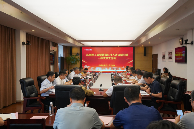 10月14日下午,东华理工大学召开教育科技人才体制机制一体改革工作会。校党委副书记、校长罗仙平出席并讲话,校党政领导班子成员夏菲、熊国保、王庆飞、李满根、刘剑斌、金建华出席。