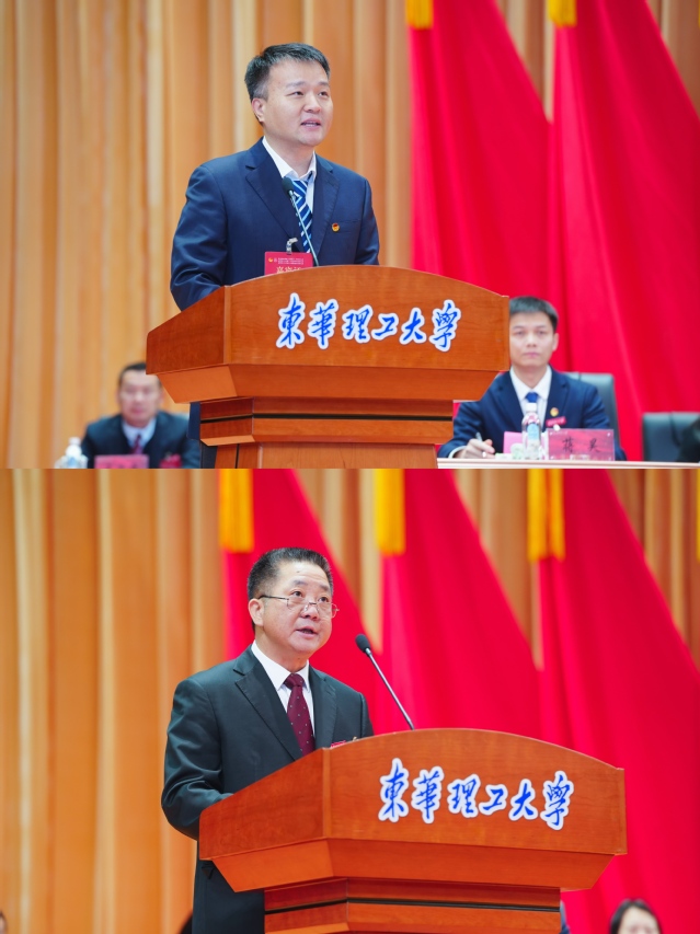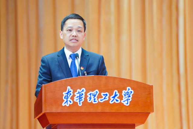 南昌大学团委书记廖元新代表兄弟高校致辞,东华理工大学工会主席代表群团组织致辞,对大会召开表示祝贺,并表示将继续加强交流合作,促进共同发展。