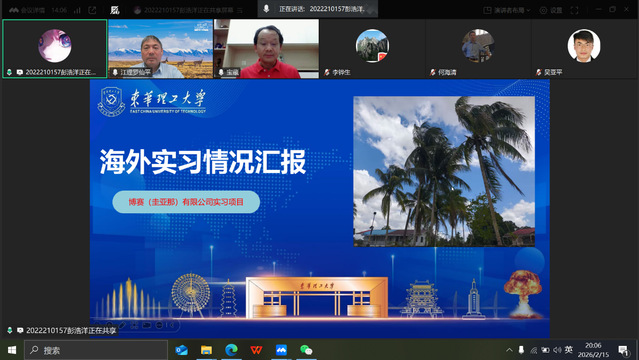 2月15日,东华理工大学召开博赛集团南美圭亚那项目实习学生2月份工作汇报会(线上会议)。校党委副书记、校长罗仙平出席会议并讲话。重庆博赛矿业(集团)有限公司总工程师吴亚平,学校相关职能部门及学院负责人、全体赴圭亚那实习学生参加会议。