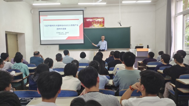 高金龙以历史的维度,从“世界面临百年未有之大变局”、“中华民族伟大复兴进入关键时期”、“新时代我国社会主义主要矛盾发生变化”、“中国共产党要始终赢得人民拥护、巩固长期执政地位”四个方面展开,运用大量的史事深入浅出地讲解习近平新时代中国特色社会主义思想产生的时代背景,促进大家更加深刻地理解习近平新时代中国特色社会主义思想产生的时代价值,也激发了全院师生学习习近平新时代中国特色社会主义思想的热情。