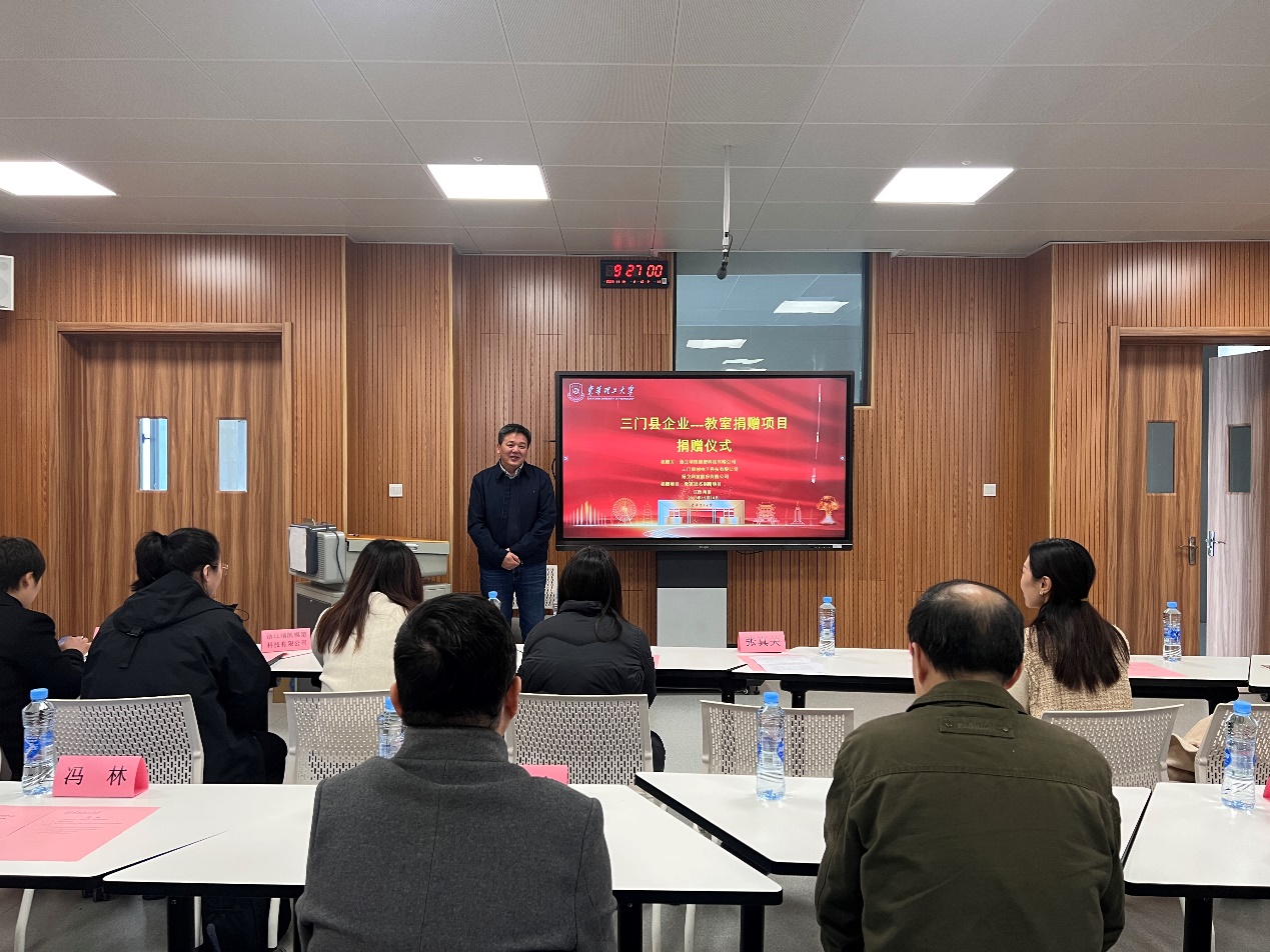为深化产教融合,创新校企协同育人模式,11月14日上午,机械与电子工程学院与三门县企业在四教501举行“教室冠名捐赠”仪式。捐赠企业、招生就业处、国内合作与交流中心、机械与电子工程学院相关负责人及代表出席,三门县人社局、三门县企业代表参加了捐赠仪式。捐赠仪式由机械与电子工程学院党委书记徐鹏程主持。